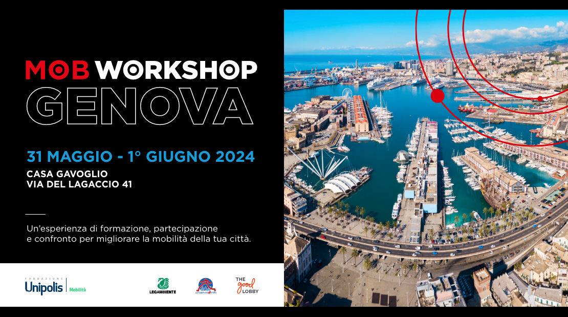 Il 31 maggio e il 1° giugno si parlerà di attivismo civico e mobilità sostenibile durante il workshop di Genova, che si terrà alla Casa di quartiere "Gavoglio" (via del Lagaccio, 41), organizzato dalla Fondazione Unipolis insieme ai partner del progetto MOB - Cittadinanzattiva, Legambiente e The Good Lobby.