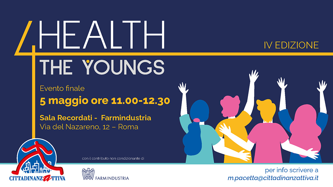 Il progetto Health for the youngs, realizzato dalla Scuola di Cittadinanzattiva con il contributo non condizionante di Farmindustria, conclude la sua IV edizione con un evento finale che si terrà il prossimo 5 maggio presso la Sala Recordati nella sede di Farmindustria, dalle ore 11.00 alle ore 12.30.