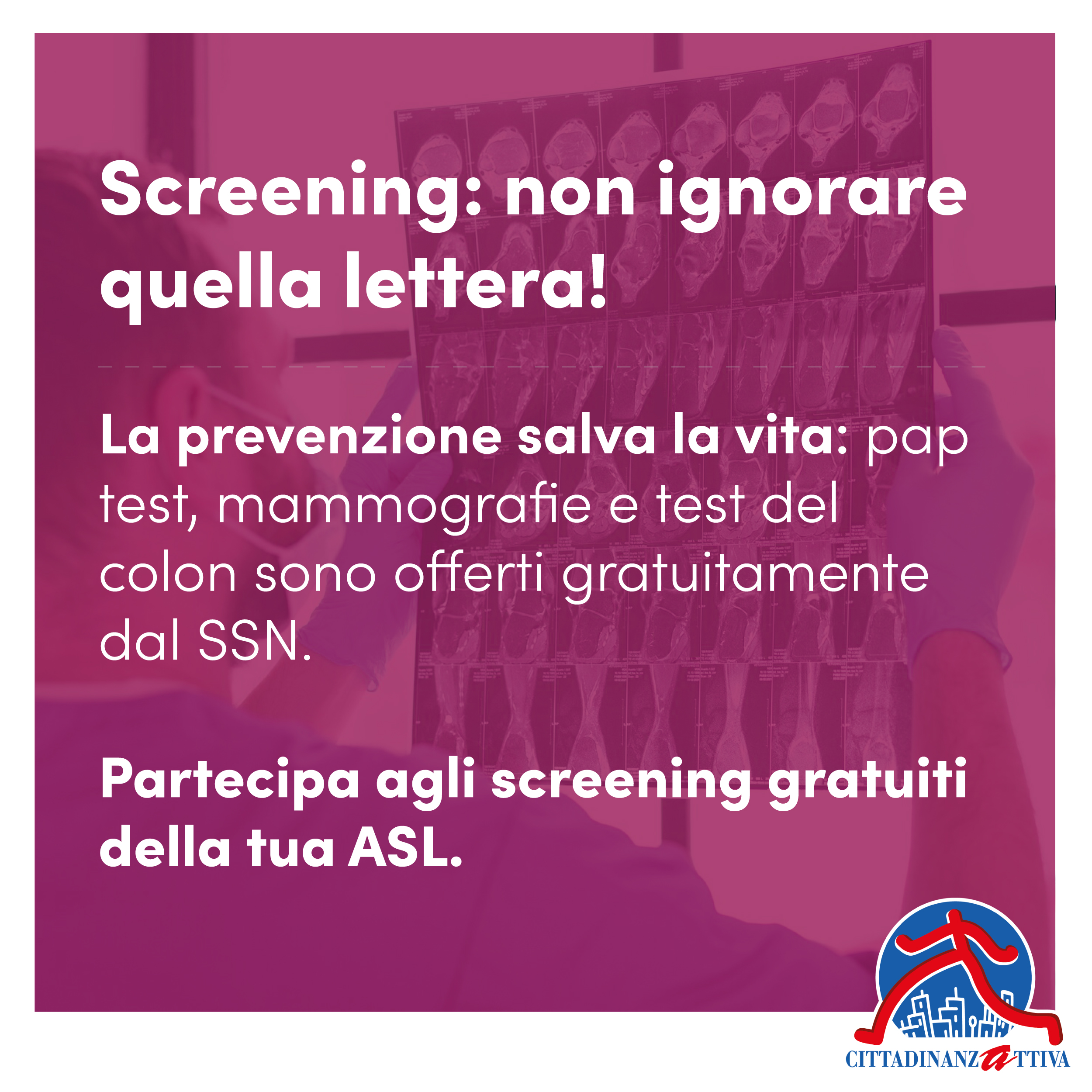 - Sai che puoi accedere gratuitamente agli screening per la diagnosi precoce?