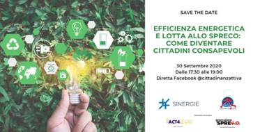 On September 30, 2020, Cittadinanzattiva and Sinergie have co-hosted an open webinar on the Facebook page of Cittadinanzattiva. The webinar was entitled Efficienza energetica e lotta allo spreco: come diventare cittadini consapevoli (“Energy efficiency and fight against waste: how to become informed citizens) and presented some best practices that every citizen could adopt to save energy, reduce waste, and safeguard the environment. The main areas of debate discussed responsible consumption, the reduction of consumption and reuse / recycling, prosuming, and new models of sustainable production.