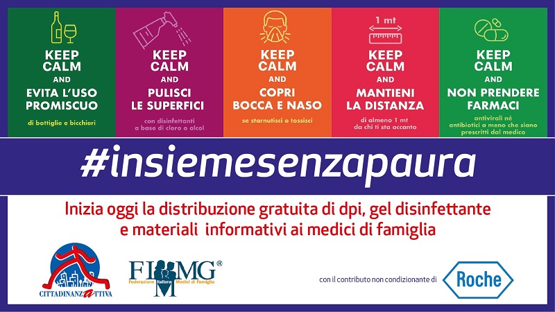 In una situazione tanto difficile e in continua evoluzione, Cittadinanzattiva, Fimmg e Roche hanno deciso di unire le energie per dare una risposta fattuale alle richieste di sicurezza dei professionisti sul territorio e conseguentemente ai cittadini da loro assistiti. “Ringraziamo Roche”, commentano Antonio Gaudioso e Silvestro Scotti rispettivamente per Cittadinanzattiva e FIMMG, “per essere stata la prima azienda ad aver aderito alla nostra richiesta di supporto ai medici di famiglia per la campagna #insiemesenzapaura. Risposta che si è concretizzata mettendo a disposizione dei medici di famiglia italiani gel disinfettante, materiale di informazione ai cittadini sulla infezione da coronavirus e i primi DPI che l’azienda è riuscita, non senza difficoltà, a reperire sul mercato”.