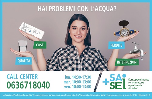 Chiama il numero 06 36718040 lunedì dalle 14.30 alle 17.30, mercoledì e venerdì dalle 10 alle 13, per ulteriori informazioni in tema di acqua o per assistenza e consulenza gratuite in questo ambito.