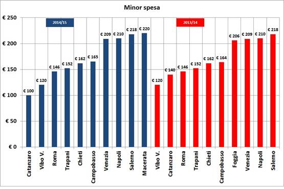 Fonte: Cittadinanzattiva – Osservatorio prezzi&tariffe, settembre 2015
