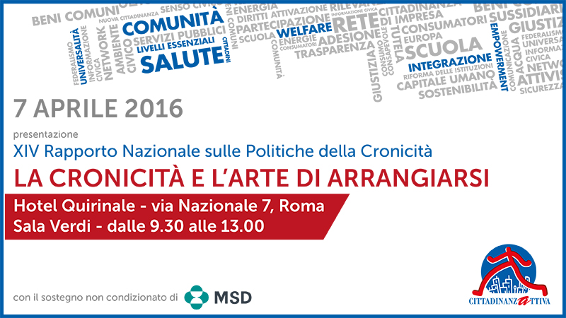 Tra tagli ai servizi, eccessiva burocrazia e difficoltà nel conciliare la patologia con il proprio lavoro, la vita dei malati cronici è tutta una arte di arrangiarsi. È quanto emerge dal XIV Rapporto nazionale sulle politiche della cronicità del Coordinamento nazionale delle Associazioni dei malati cronici (CnAMC) di Cittadinanzattiva, presentato oggi a Roma dal titolo “La cronicità e l’arte di arrangiarsi”.