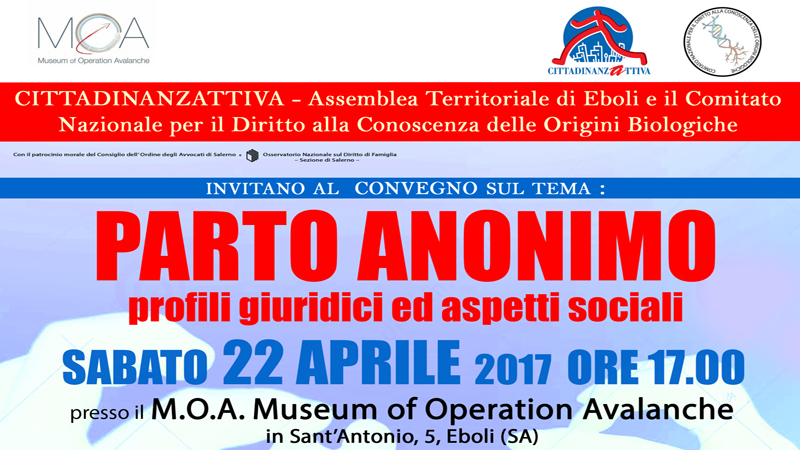 Il prossimo 22 Aprile, Cittadinanzattiva - Assemblea di Eboli e Comitato Nazionale per il Diritto alla Conoscenza delle origine Biologiche invita la cittadinanza al Convegno sul tema del Parto Anonimo, su profili giuridici ed aspetti sociali.