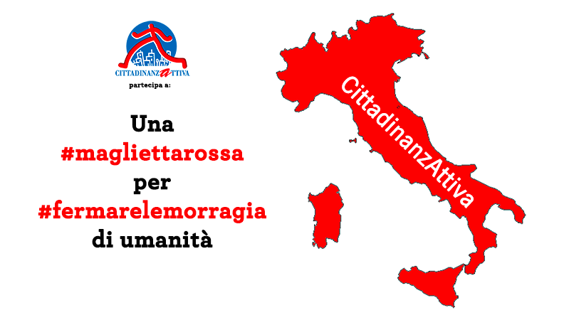Cittadinanzattiva ha aderito all’iniziativa simbolica lanciata da Libera insieme ad ARCI, Legambiente e ANPI a favore dell’accoglienza, della sicurezza e della solidarietà. L’appuntamento è per sabato prossimo 7 luglio 2018: chi vorrà potrà indossare una maglietta rossa, un simbolo molto forte, per dire basta alle morti in mare e per chiedere all’Europa di fare la sua parte nell’accoglienza, coniugando sicurezza e solidarietà. Il colore rosso è il colore che negli ultimi tempi ricorre nelle magliette di molti bambini annegati o arrivati in condizioni disperate sulle nostre coste o come quello delle magliette delle mamme che si vogliono rendere riconoscibili. Immagini che sono impresse nella nostra mente. Sabato fermati un attimo e indossa anche tu la tua maglietta rossa per lanciare un messaggio di solidarietà!