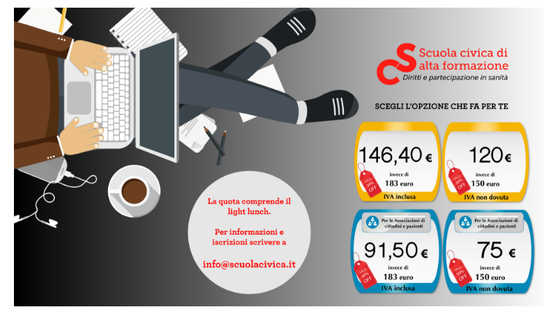 Aperte le iscrizioni al corso 'Acquisti in sanità. Governare le innovazioni garantendo i diritti', della nostra Scuola civica di alta formazione, diritti e partecipazione in sanità, che si terrà il prossimo 23-24 ottobre a Napoli. Il corso intende essere una occasione in cui presentare, discutere e individuare insieme strumenti per la prevenzione e gestione del rischio nell'ambito degli acquisti in sanità, offrendo metodi, strumenti, esperienze e buone pratiche per la mappatura e valutazione dei rischi e per l'individuazione delle relative azioni correttive.