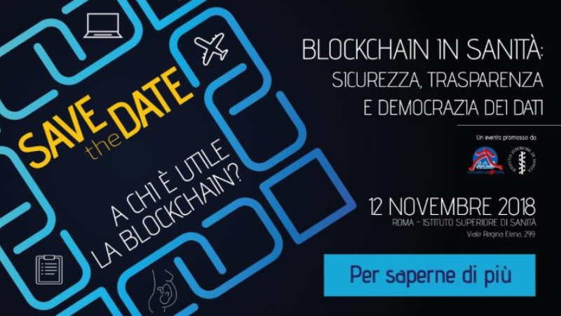 L'evento "Blockchain in Sanità: sicurezza, trasparenza e democrazia dei dati" si terrà il prossimo 12 novembre 2018 a Roma presso l’Istituto Superiore di Sanità (in viale regina Elena 299) e sarà destinato prioritariamente al personale del Servizio Sanitario Nazionale interessato all’impiego della Blockchain in Sanità.