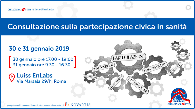 Forte sulla carta, molto meno nella realtà. Disuguale, perché non garantito ai cittadini sempre, ovunque e allo stesso modo. Formale, perché non orientato a garantire effetti di miglioramento della realtà. Così appare il coinvolgimento dei cittadini da parte delle istituzioni in materia sanitaria. Se è vero, infatti, che numerose sono le norme e le previsioni che lo disciplinano, sia a livello nazionale che regionale e locale, assai meno efficaci risultano invece essere le fasi e le modalità in cui la partecipazione civica viene garantita nelle politiche sanitarie pubbliche. Si rischia così di avere partecipazione, ma senza qualità e senza cambiamenti effettivi; pochi cittadini e poche associazioni inclusi, e molti esclusi; cittadini che hanno voce solo su aspetti marginali dell’azione pubblica; cittadini a cui non si rende conto del processo partecipativo né dei suoi risultati e che sono tagliati fuori dalla messa in pratica delle decisioni che hanno contribuito a prendere. Il quadro emerge dalla Indagine sulla partecipazione civica in sanità, promossa da Cittadinanzattiva nell’ambito del progetto “Consultazione sulla partecipazione civica in sanità” con il contributo non condizionante di Novartis.