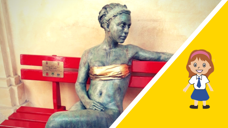 Si tratta di una statua a grandezza naturale che rappresenta una donna seduta su una panchina rossa con indosso solo una fascia dorata a coprire il seno. La statua è stata realizzata dalla classe V E del Liceo Artistico "Bernardino di Betto" di Perugia e dallo scorso 8 marzo si trova nell'atrio di Palazzo della Penna della città. L'opera d'arte dal titolo "Senza catene" è il risultato di un percorso di sensibilizzazione compiuto dagli studenti nel progetto "ROSSO FOR LIFE Stop alla violenza scelgo il rispetto", promosso dalla Consigliera Provinciale Gemma Bracco in collaborazione con il Comune e la Provincia di Perugia ed i coordinamenti donne di CGIL,CISL e UIL.