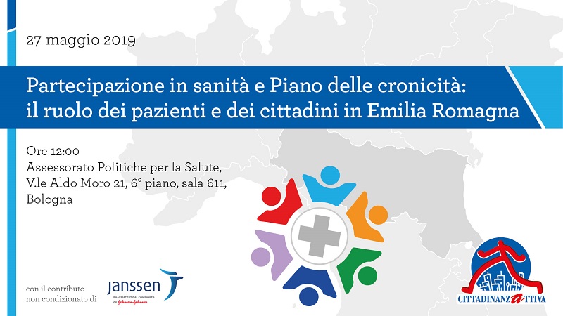È quanto sarà analizzato durante l'evento "Partecipazione in sanità e Piano delle cronicità: il ruolo di pazienti e cittadini in Emilia Romagna” promosso a Bologna da Cittadinanzattiva-Tribunale per i diritti del malato con il contributo non condizionato di Janssen e previsto per il prossimo 27 maggio 2019 presso l'Assessorato Politiche per la Salute, Viale Aldo Moro 21, dalle ore 12:00 alle 14:00.