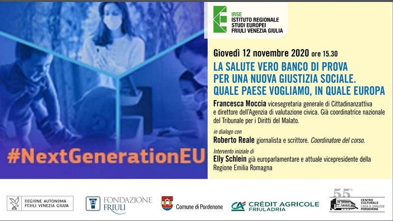 Si tiene il 12 novembre alle 15:30, presso l'IRSE (Istituto Regionale Studi Europei della Regione Friuli Vnezia Giulia) un appuntamento di dialogo fra associazionismo e politica dal titolo "La Salute vero banco di prova per una nuova giustizia sociale. Quale Paese vogliamo, in quale Europa".