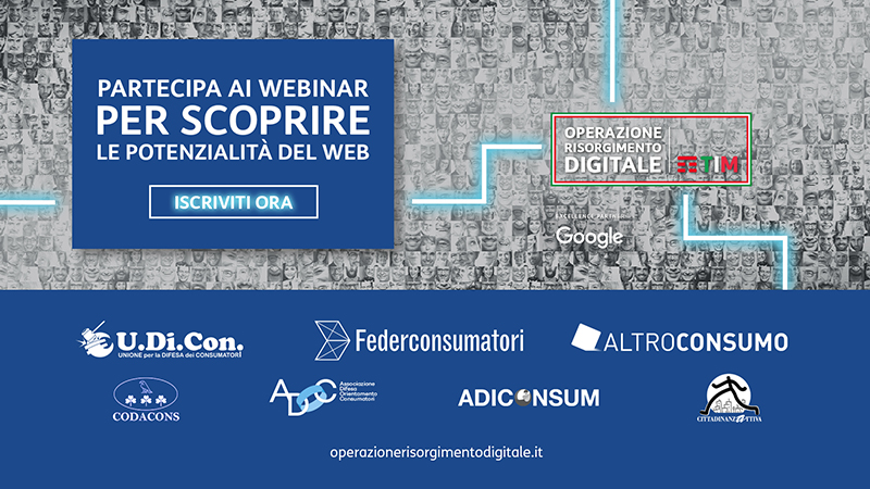 Accrescere le competenze del capitale umano del Paese grazie a nuove iniziative di divulgazione digitale realizzate in collaborazione con istituzioni, imprese, associazioni e rivolte a tutti: Cittadini, Scuola, Imprese e Pubblica Amministrazione. Con questo obiettivo prosegue la rimonta digitale del Paese grazie a “Operazione Risorgimento Digitale”, che si rinnova nei format con piattaforme, webinar gratuiti e livelli di apprendimento certificati per assicurare su scala nazionale la massima diffusione delle conoscenze per l’uso degli strumenti digitali.