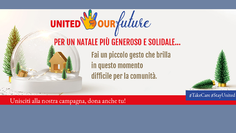 Dall'11 dicembre all'11 gennaio collegandosi al portale https://united4ourfuture.org è possibile scegliere tra un ampio catalogo di prodotti di prima necessità selezionati tra quelli disponibili presso i supermercati Unes e riempire il proprio "carrello solidale" da donare a coloro che stanno attraversando un momento di difficoltà. In alternativa, si potranno acquistare anche i "Cesti Solidali" del valore di 15, 25 o 50 euro, sempre in favore dei nuclei familiari che necessitano di un sostegno in questo periodo di emergenza economica e sociale causata dalla pandemia. Al termine della campagna, i prodotti alimentari raccolti verranno distribuiti da Banco Alimentare a coloro che ne hanno maggiore necessità.