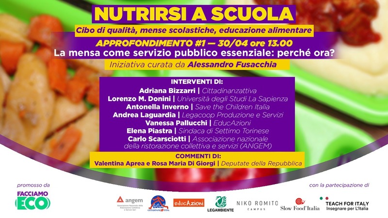 Si tratta del primo di due approfondimenti del ciclo di incontri "NUTRIRSI A SCUOLA | Cibo di qualità, mense scolastiche, educazione alimentare".