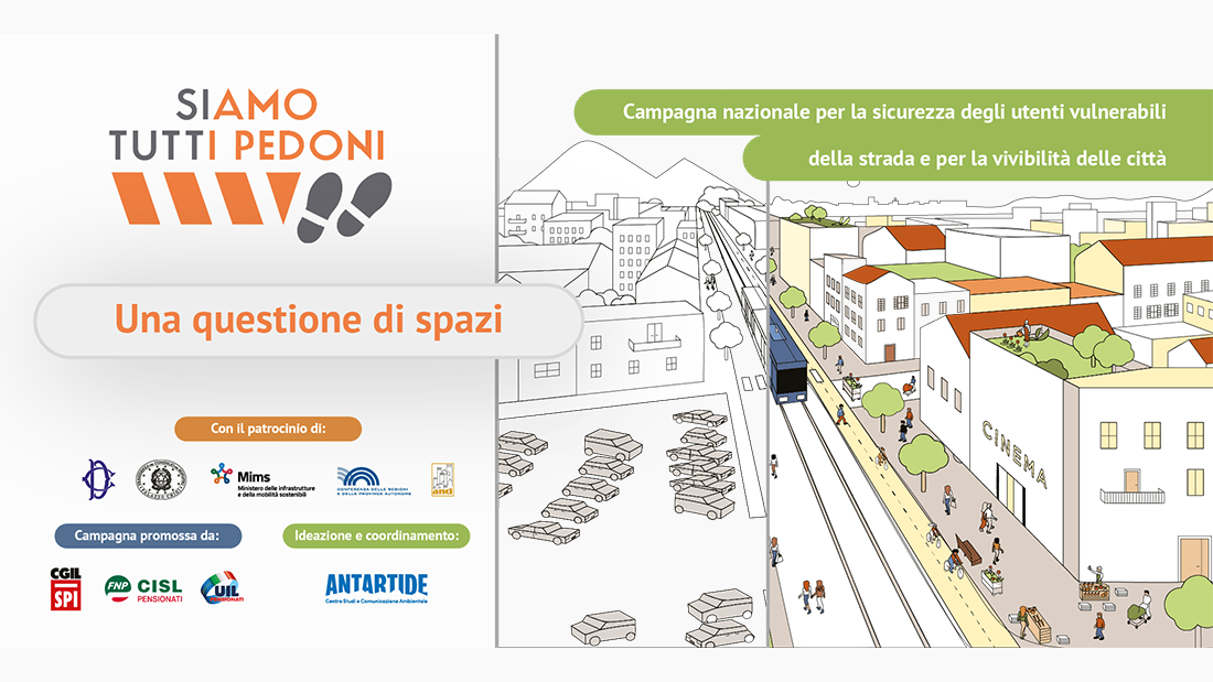 “Una questione di spazi” è la dodicesima edizione di "Siamo Tutti Pedoni", la campagna nazionale per la sicurezza degli utenti vulnerabili della strada e per la vivibilità delle città promossa da Centro Antartide, SPI Cgi, FNP Cisl, UILP Uil e a cui Cittadinanzattiva aderisce.