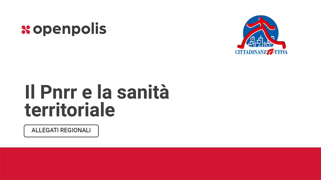 La fotografia è contenuta in un report pubblicato da Openpolis e da Cittadinanzattiva “Il PNRR e la sanità territoriale”, navigabile nei suoi focus regionali al seguente link (piattaforma OpenPNRR) e scaricabile al seguente link.