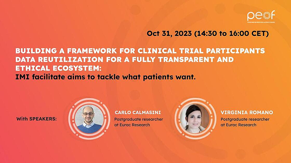Ti invitiamo alla prossima sessione virtuale del Patient Engagement Open Forum (PEOF) dal titolo "Costruire un quadro per il riutilizzo dei dati dei partecipanti agli studi clinici per un ecosistema completamente trasparente ed etico: FACILITATE affronta ciò che i pazienti desiderano" che si terrà martedì 31 ottobre 2023, alle 14:30 CET. Registrati qui
