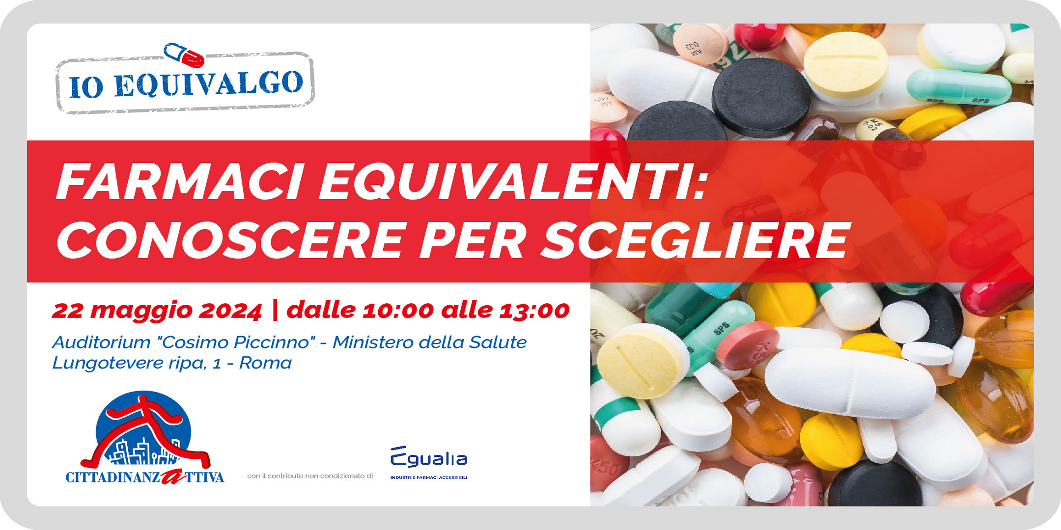 Il prossimo 22 maggio dalle ore 10.00 a Roma- presso il Ministero della Salute – auditorium “Cosimo Piccinno” – Lungotevere Ripa 1.si terrà la Conferenza conclusiva della quinta edizione di #IoEquivalgo.