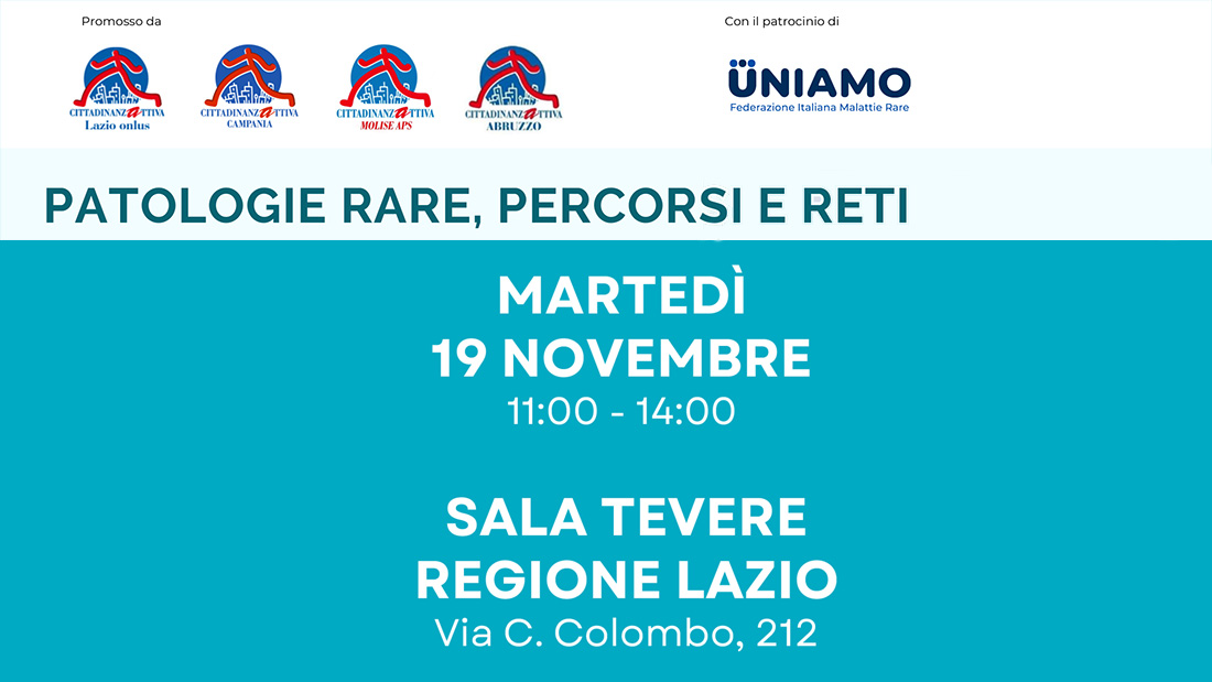 Prosegue il dibattito interregionale sulle malattie rare, le criticità e le possibili soluzioni organizzative con un confronto aperto alle istituzioni, alle associazioni e ai cittadini. Dopo il primo incontro tenutosi a Napoli il 9 luglio scorso, centrato sui diversi percorsi regionali di presa in carico e gestione delle persone con patologie rare, si svolge a Roma il prossimo 19 novembre, presso la Regione Lazio, il secondo incontro organizzato dalle segreterie regionali di Cittadinanzattiva dell'Abruzzo, della Campania, del Molise e del Lazio con l'obiettivo di condividere percorsi, soluzioni e proposte operative per il miglioramento dei servizi.