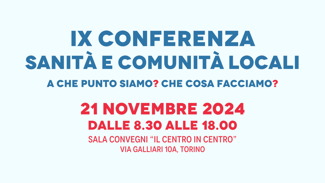 Il prossimo 21 novembre, Cittadinanzattiva Piemonte , in collaborazione con la rete HPE Piemonte presenta la "IX Conferenza - Sanità e Comunità Locali". I temi che verranno trattati riguarderanno la sanità digitale, le vaccinazioni, prevenzione e cronicità , il coinvolgimento dei cittadini su come migliorare la comunicazione tra cittadini e operatori.