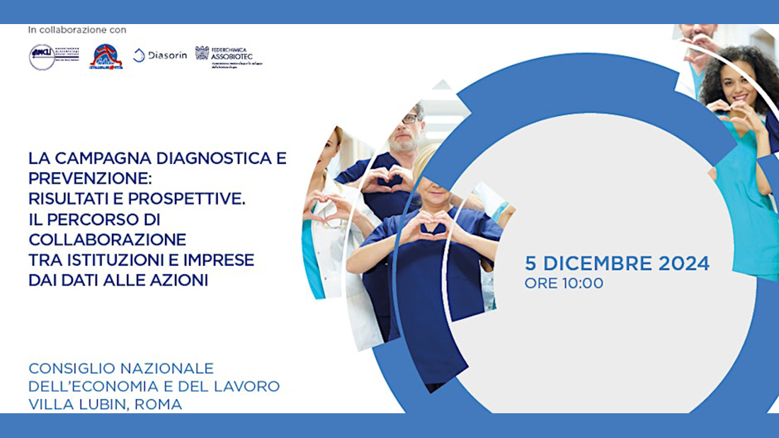Il 5 dicembre si terrà a Roma presso la sede del Consiglio Nazionale dell’Economia e del Lavoro (CNEL), l’evento di informazione e prevenzione “ La campagna diagnostica e prevenzione: risultati e prospettive. Il percorso di collaborazione tra istituzioni e imprese, dai dati alle azioni”.