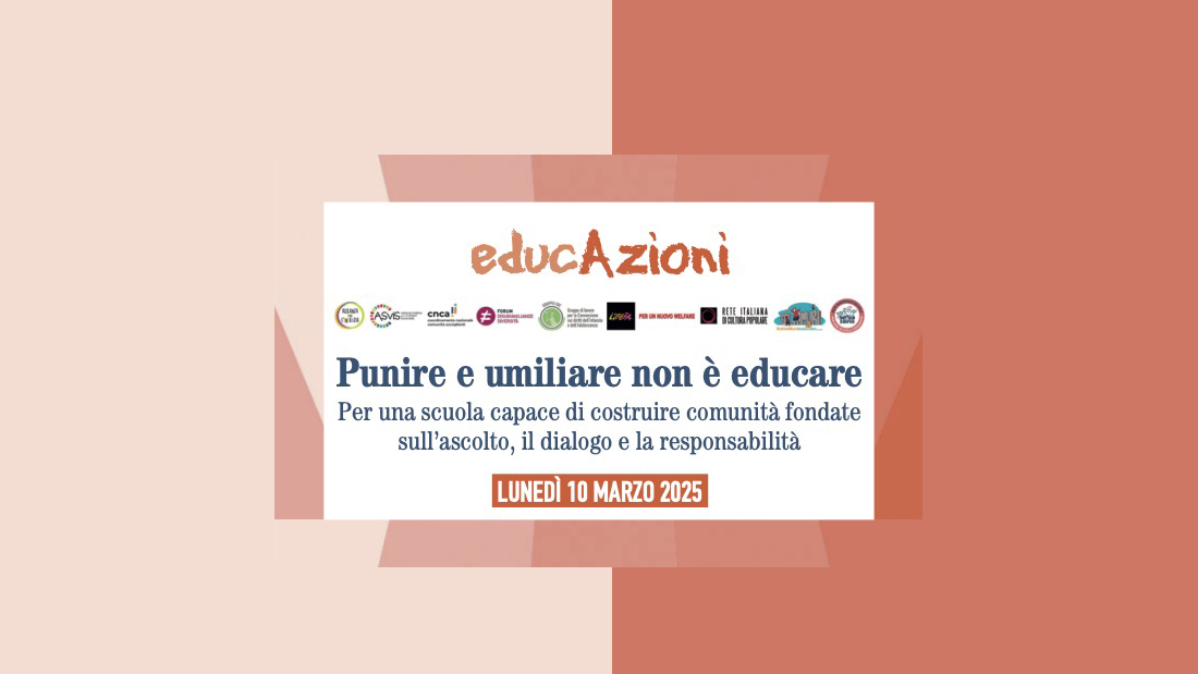 Cittadinanzattiva, partner delle rete EducAzioni, è lieta di invitarvi all'incontro del 10 marzo ore 17:00-19.30 dal titolo "Punire e umiliare non è educazione. Per una scuola capace di costruire comunità fondate sull’ascolto, il dialogo e la responsabilità" che sarà trasmesso online sulla pagina facebook e sul sitoweb di Educazioni.