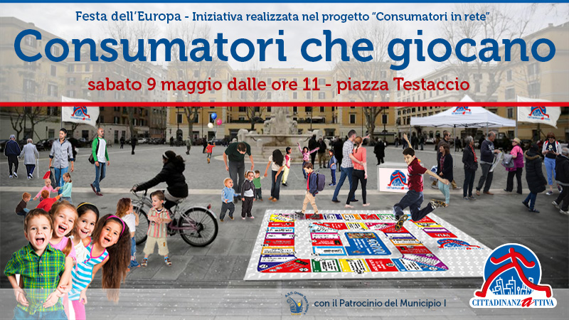 Un maxi gioco dell’oca farà da tappeto a Piazza Testaccio, sabato 9 maggio dalle ore 11.00 alle ore 13.00, per l’iniziativa “Consumatori che giocano” promossa da Cittadinanzattiva nazionale e Cittadinanzattiva Lazio, in collaborazione con la associazione sportiva Dream Team Roma e con il patrocinio del Municipio I di Roma.