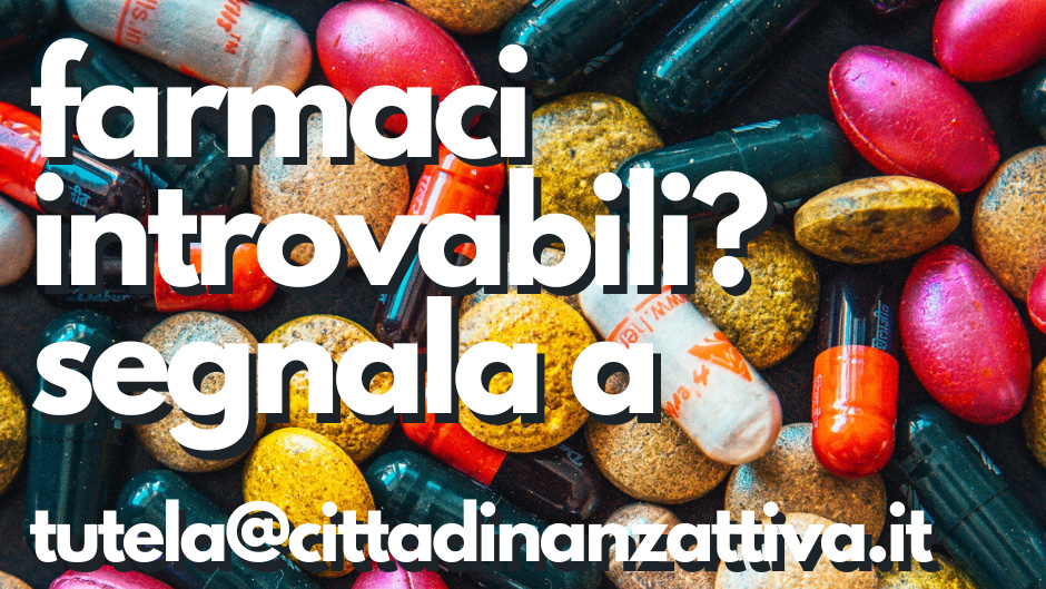 In questi giorni si parla spesso di farmaci introvabili, relativamente a quelli “di marca’, non per gli equivalenti. Segnalateci eventuali difficoltà che avete incontrato, ci attiveremo immediatamente. Potete mandare un breve messaggio alla email