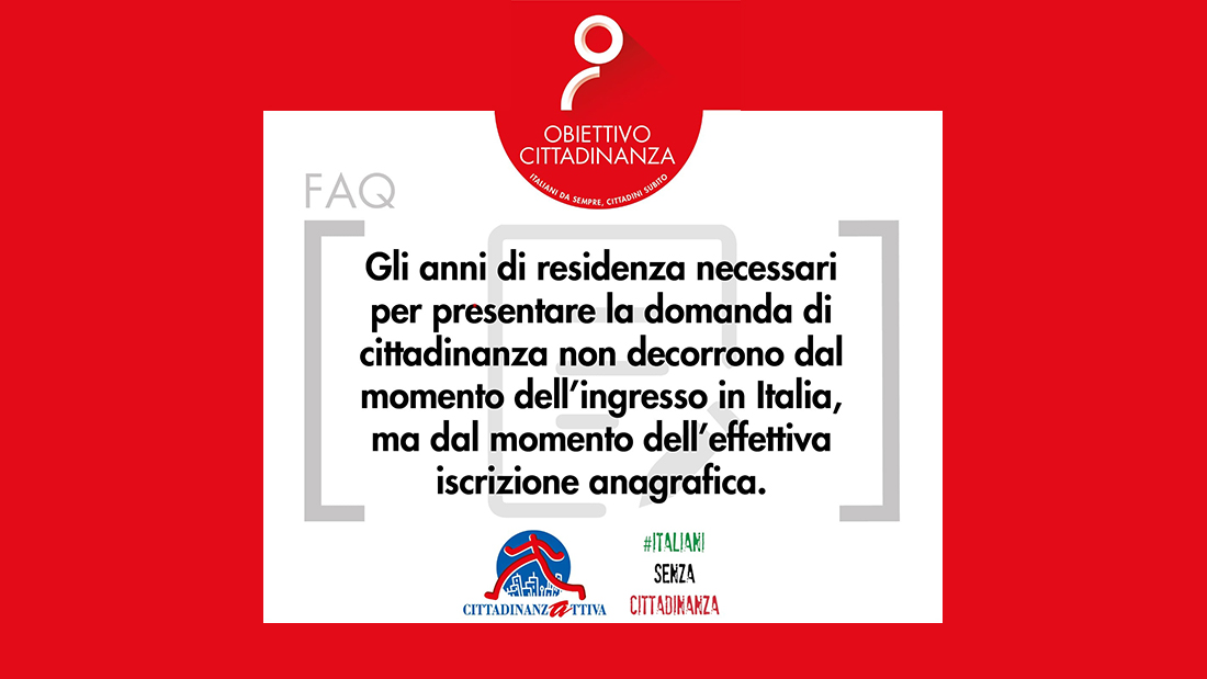 Uno dei redditi annuali è inferiore al limite di legge, posso chiedere la cittadinanza lo stesso? Sono arrivato in Italia: da quando posso presentare la domanda di cittadinanza, a partire dal mio ingresso o dall’iscrizione anagrafica? Queste e tante altre, le faq pubblicate sulla pagina della campagna Obiettivo Cittadinanza per fornire informazioni utili a chi intende presentare la domanda di cittadinanza o conoscere modalità e requisiti di accesso. Per saperne di più e rimanere sempre aggiornato visita il sito www.obiettivocittadinanza.it e la nostra pagina FB