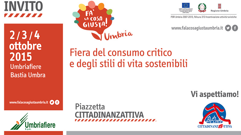 Dal 2 al 4 ottobre si svolge a Bastia Umbra (PG) la seconda edizione in Centro Italia di "Fa' la cosa giusta", la fiera del consumo consapevole e degli stili di vita sostenibili.