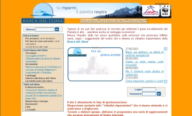 "Cuore" del progetto Banca del clima - che fa parte dell'iniziativa internazionale del WWF "Power switch", cambiamo energia - è un nuovo sito web, al quale ogni cittadino potrà accedere per: